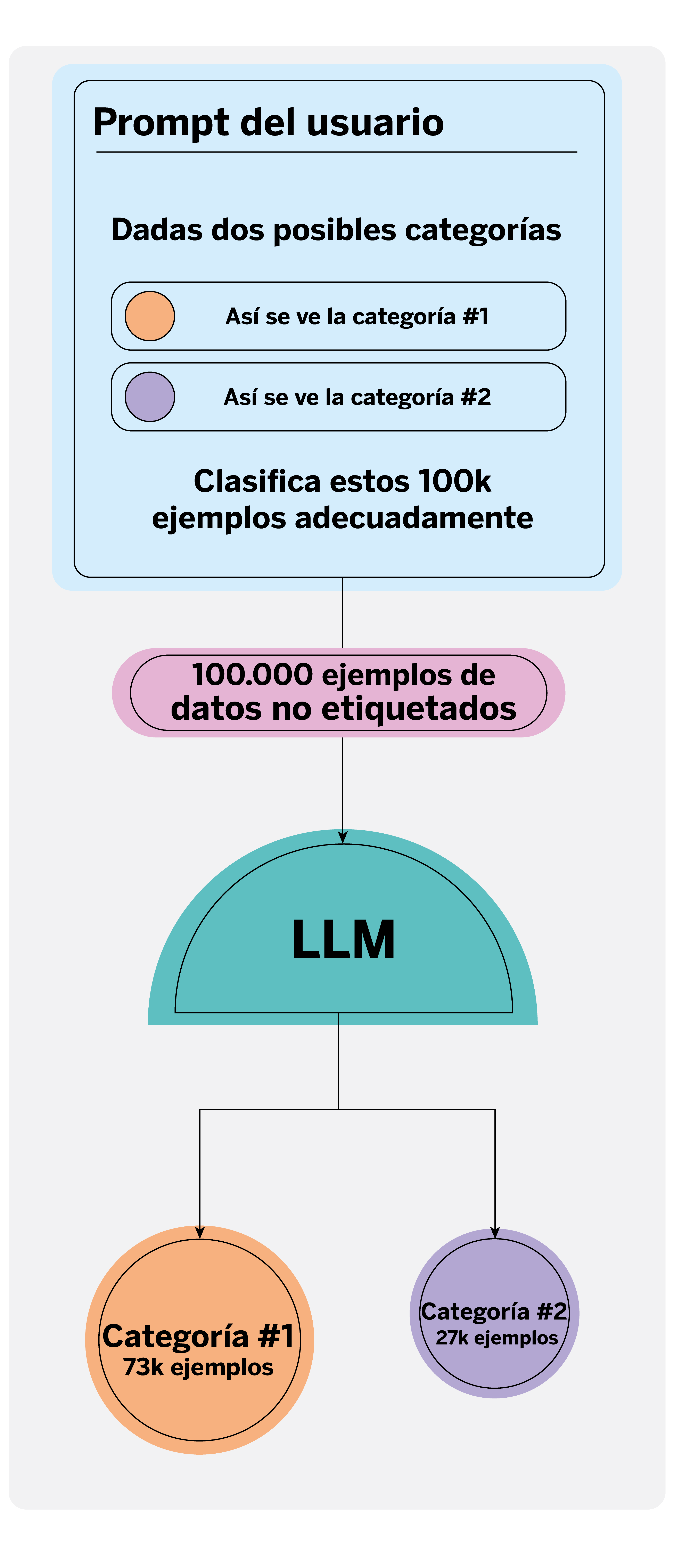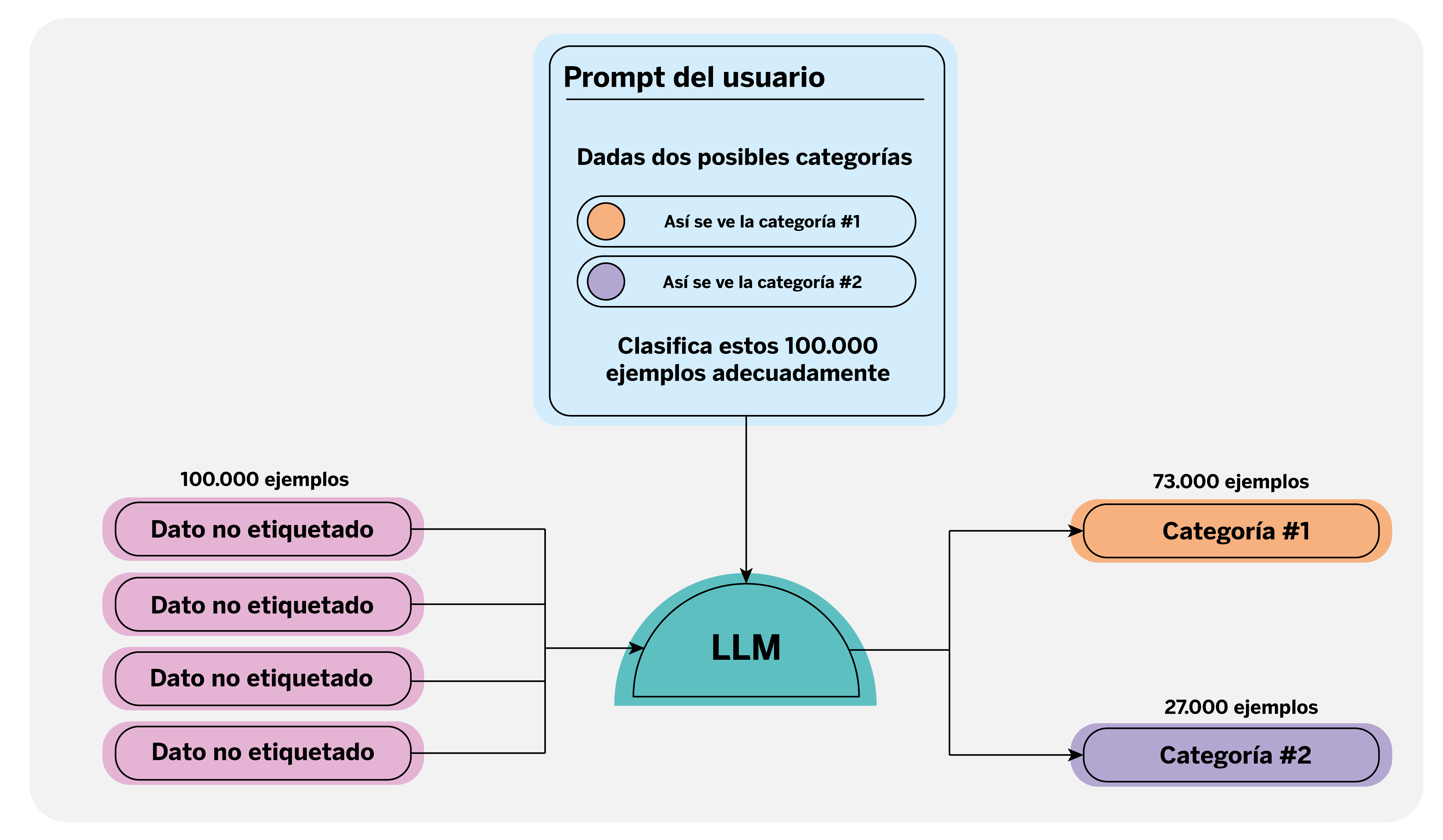 Para utilizar un LLM en el etiquetado automático, es esencial redactar un ‘prompt’1 claro y detallado que defina las categorías a etiquetar, al que podemos proporcionarle ejemplos y directrices concretas. Por ejemplo, en qué contexto y con qué finalidad se están anotando los datos. Esto le permite al modelo generar etiquetas precisas y consistentes.
