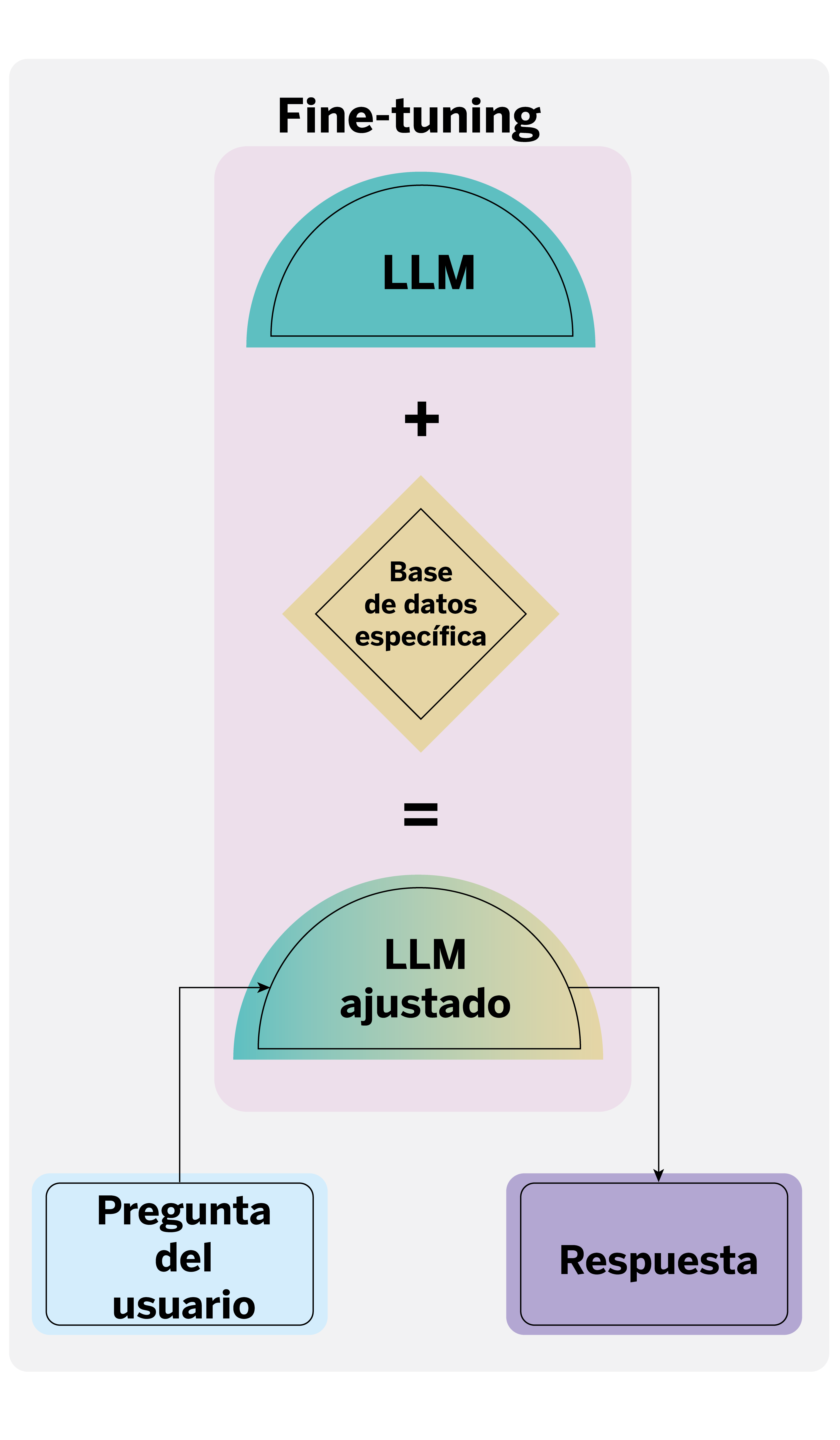 El fine-tuning, por otro lado, implica ajustar un LLM preentrenado para especializarlo en un dominio o tarea específica, utilizando un conjunto de datos pertinente a esa tarea.