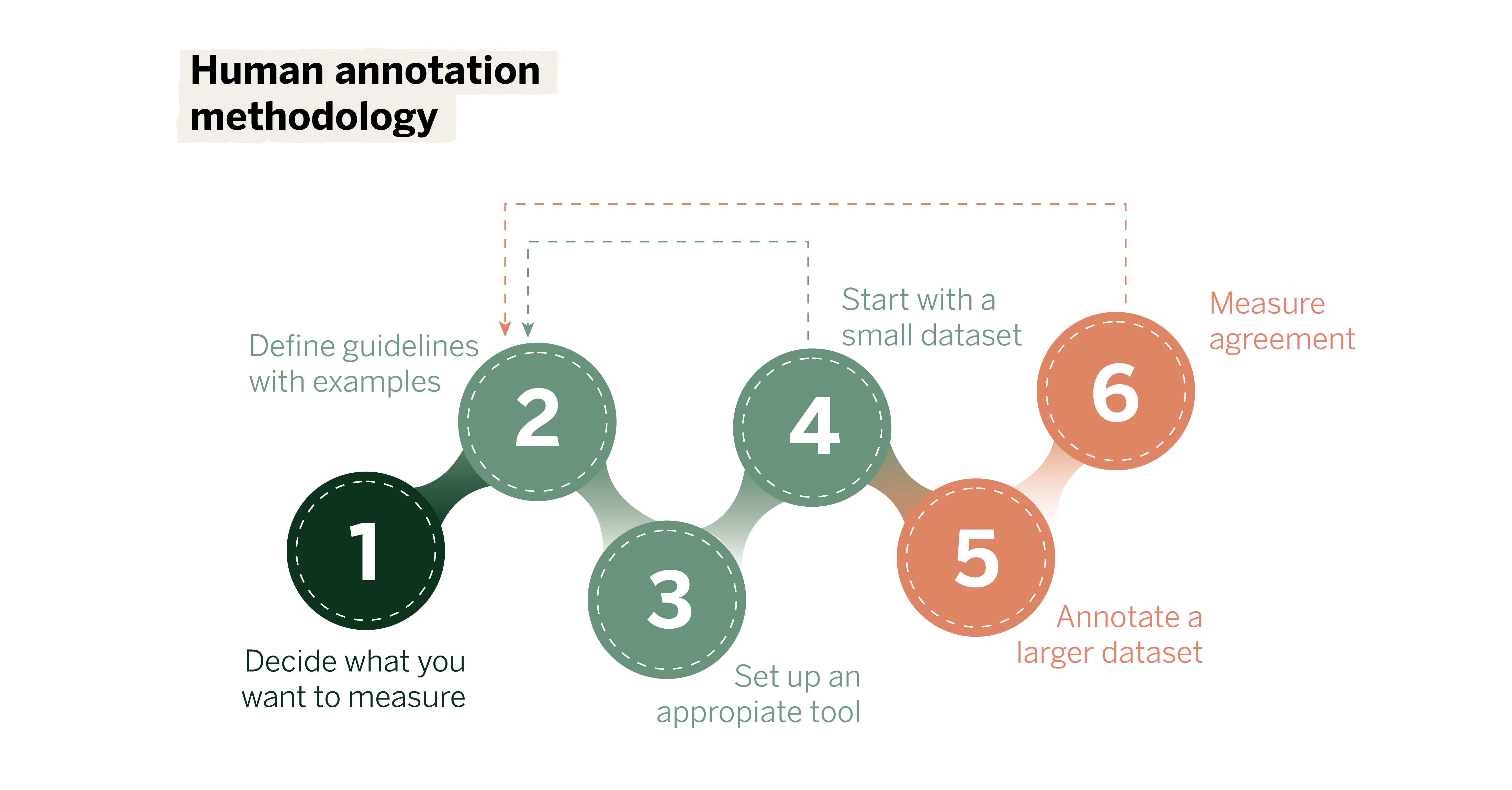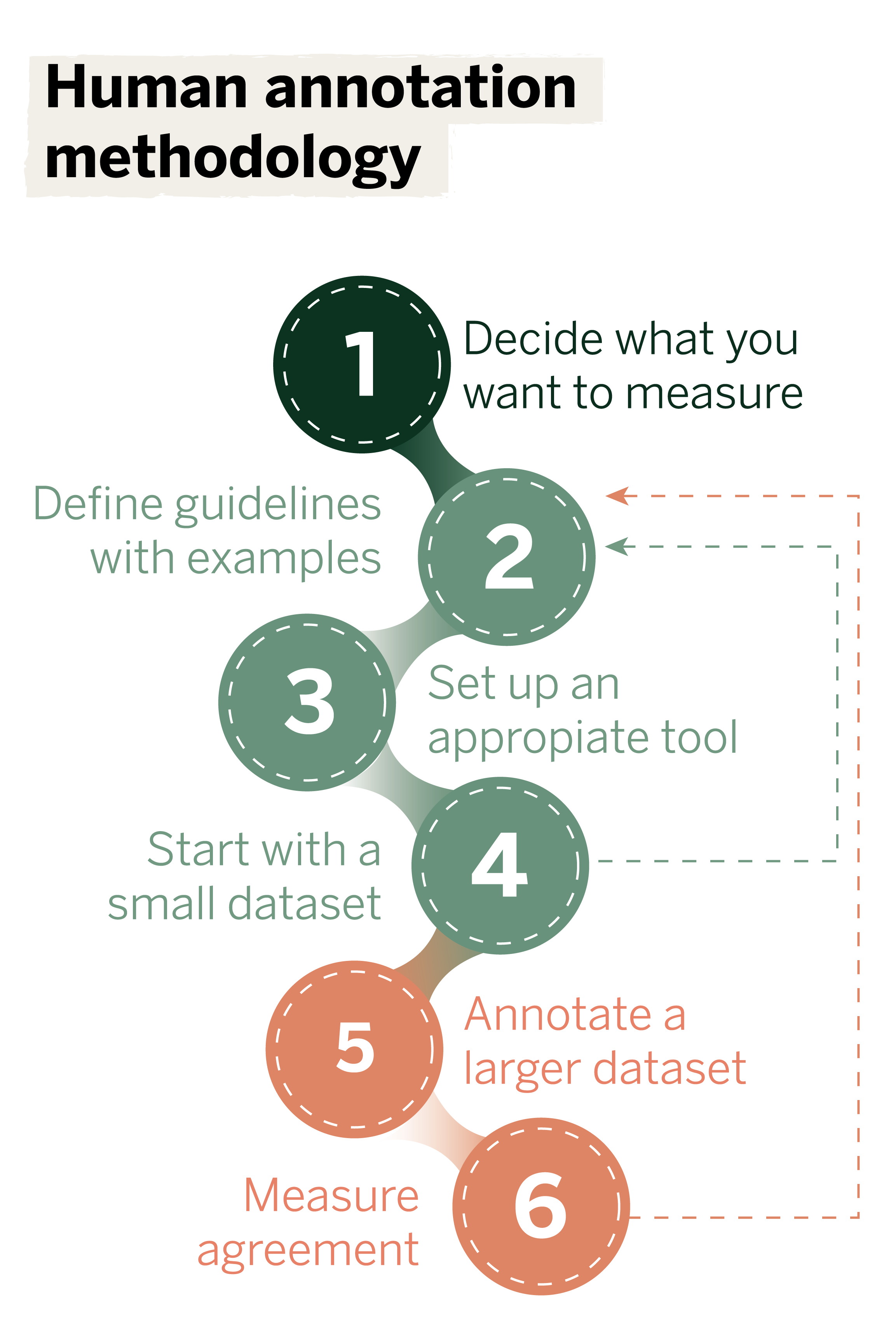 - Conduct several rounds of annotation, assessing consistency and accuracy in each round.
