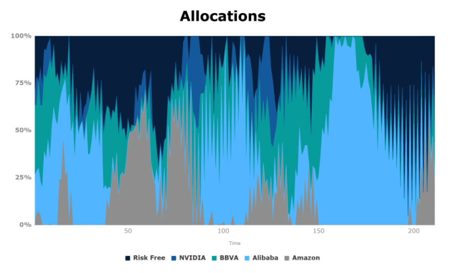 En AI Factory hemos explorado con técnicas avanzadas de aprendizaje por refuerzo profundo (DRL) para obtener una propuesta de asignación presupuestaria a través de diferentes valores financieros (stocks). Este problema de optimización cuenta con varios enfoques, que comenzaron con el desarrollo de trabajos revolucionarios como “Portfolio Selection” de Markowitz (1952), que le valió el Premio Nobel. Desde entonces, se han explorado varias alternativas para atacar este problema de optimización financiera.